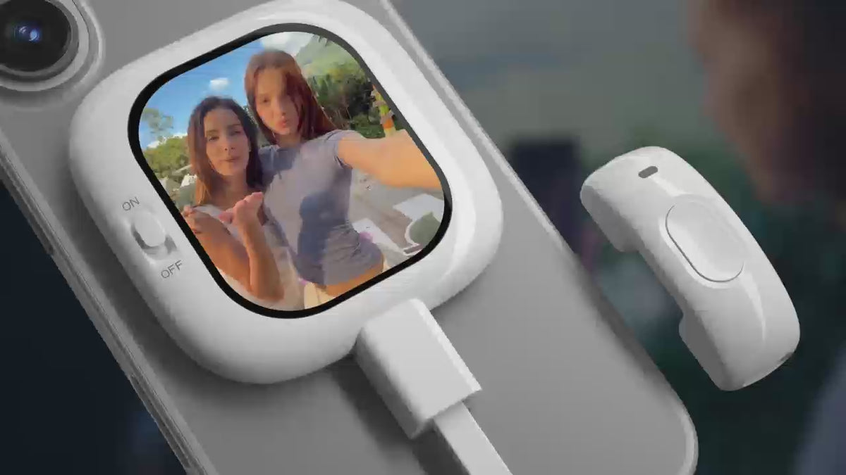 Vlogmate Mini is a magnetic snap-on selfie screen that lets you use your back camera like a pro — while still seeing yourself in real-time. Just clip it on, plug it in, and you’re ready to capture your best angle, every time.